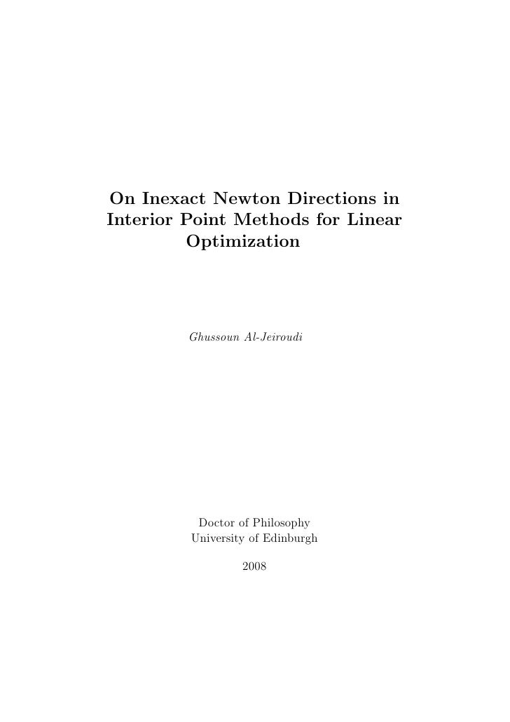 122 interior-point methods for linear programming 10. 2 newton’s method newton’s method is to find a zero (root) optimization interior methods linear point for of a vector-valued function f : rn → rn. let’s first look at the simplest case of one-variable function f : r → r. the basic idea is quite simple. newton’s method starts with an initial point x 0 ∈ r,findsarootx 1 of the. Linearoptimization (lo) is one of the most widely taught and fast developing techniques in mathematics, with applications in many areas of science, commerce and industry. the dramatically increased interest in the subject is due mainly to advances in computer technology and to the development of interior point methods (ipm) for lo. Linear programming software for industrial size constrained optimization based on interior-point method.